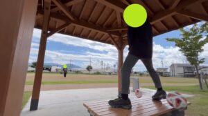 足の間にあるペットボトルを当てながら、足の間にも通すというとても難しいチャレンジでした笑😂