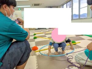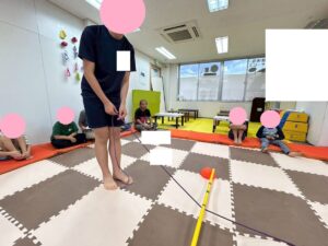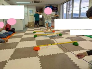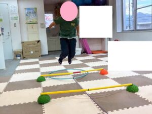 今週の運動遊びでは、障害物のカンガルージャンプ!