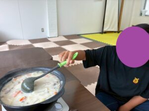煮込む時間も飽きずにじーっと鍋を見ていたお友達もいました。