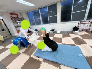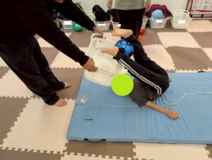 1回目は、足を頭の方まで持ち上げることに苦戦をしているお友達の姿が見られましたが、何度も挑戦をすることで身体の使い方をつかんだり、反動をつけるといった工夫をしたりする姿が見られました!👀