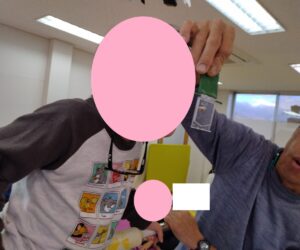 布団の姿勢になり、そのまま息を吹きかけてもらいます!体をキープしたまま息を吹くのは少しだけ筋肉をつかいます!みんな頑張ってふーふーしていました!