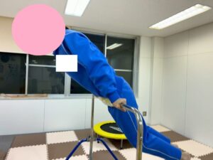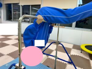 鉄棒が得意なお友達は、自分で簡単に布団のポーズになったり、そのまま背筋や腕の力を使って元の姿勢に戻ってくることもでき、最後に前回りができました!