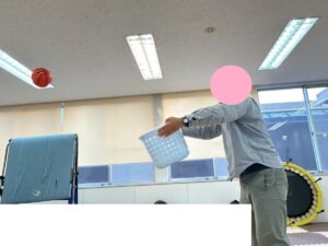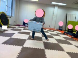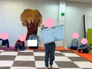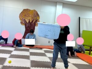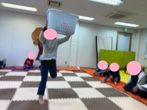 今週の運動遊びではカゴを使ってボールキャッチをしています!