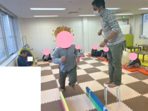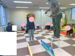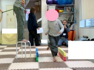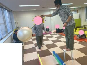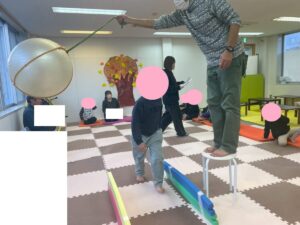 今週の運動遊びでは、障害物に当たらないように走るゲームがあります!