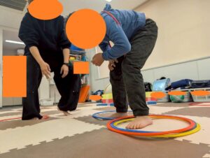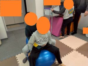 バランスボールでとても楽しそう🏉 自由時間もレゴブロック・バランスボール・