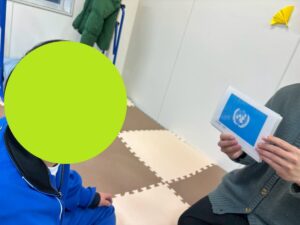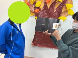 まだ活動モードのお友達にも、『次はなんだろう??』と声を掛け、静かな活動をまわすスタッフの近くに座れるよう誘ってみると、活動を切り替え参加することができています!📚
