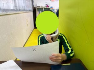 視覚的な刺激に対する注意散漫があるおこさんに対し、シンプルですが、『パーテーション』を立て、そのお子さんだけの空間を作るようにしています!
