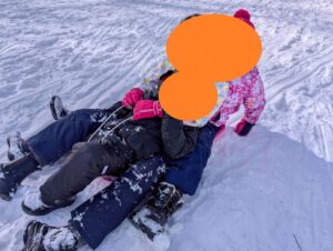 登っては滑りと体力が必要です。🛷ソリで滑る人もいれば、時々雪合戦をする人もいてとても楽しそうです。