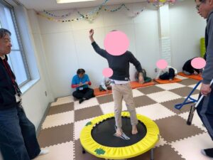 今週の運動あそびは、トランポリンやマット運動、鉄棒など、基礎的な運動サーキットを行いました!