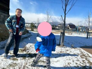 雪は意外と残っていませんでしたが、かき集めて雪合戦スタート!