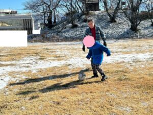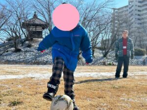 サッカーもしました!ボールに足を当てるのが上手で、「学校でもやってるよー」と教えてくれた通り、キックも力強かったです!