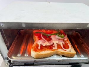 上から好きなように材料をトッピングしたら、あとはトースターでチン!✨