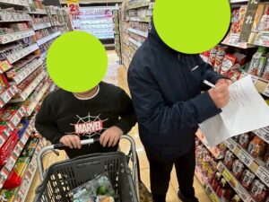 材料を探しながらカゴに入れる係と、メモ帳を確認しながらチェックを入れていく係で分担し、力を合わせて買い出しを務めました🛒✨