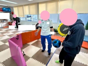 パーテーションを置いてその中からボールが出ないよう、安全に遊ぶことができました!
