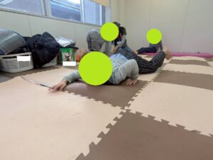 今週の運動あそびはサーキットでしたが、その中の1つの動きに『わに歩き』がありました🐊