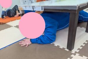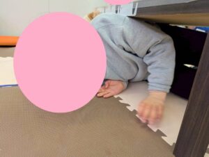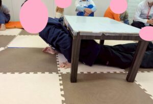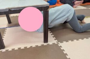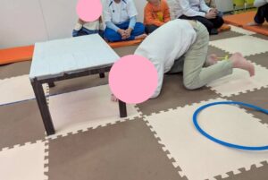 運動あそびのサーキットの一環で、机の下くぐりを行いました!