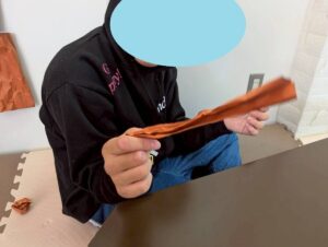 今日は、桜🌸の枝、幹を作ってくれています。 みんな上手作って、木の幹の形にしたら