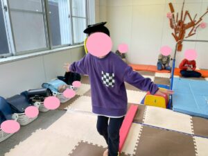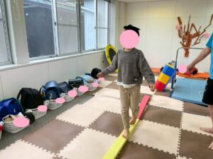 今週の運動遊びはサーキット!その中で、バランス感覚を鍛える運動もありました!