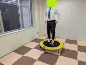 トランポリンでは、高学年のお友達は天井に着くか試していました。✋