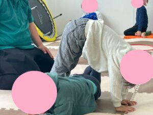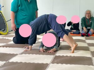トンネルになっているお友達も、しっかりクマのポーズをして姿勢をキープします!