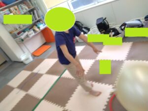ペアバウンドキャッチボール🥎お友達みんな赤いフープの中にボールをバウンドさせるのが上手です。お友達の中にはバウンドの勢いが良すぎるお友達もいましたね。