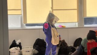 前回、紙粘土でハンコを作ったんですけど・・・今週は色を塗ろうということでがんばりました!マジックを使ったり、絵具を使ったりしてカラフルな作品になりました。 ↑ 謎の生き物登場(笑)騒がしいので、事務室から出てみると・・・ひとりのお友達が自分...