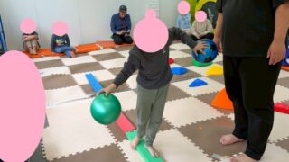 今週も運動あそびを毎日頑張ってきた子どもたち!金曜日までよく集中していました! 両手でボールを持ちながら、バランスをとって渡ります!!おっとっと!!よろけそうになっても、あきらめずに頑張って持ち直しました!しっかりバランスをとってフラミンゴ...