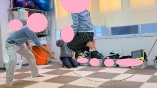 放課後等デイサービス 跳びながらクイズ!🦘 今週取り組んでいるサーキットのなかの、「サイコロジャンプ」が面白いです!🎲トランポリンを跳ぶ前に、まずはサイコロを振ります出た目の数に応じてスタッフがお題を出します!「4がでたから、教室のお友達を4人答えて!」ジャンプをしたまま、お題に答え... 2025.10.22 放課後等デイサービス